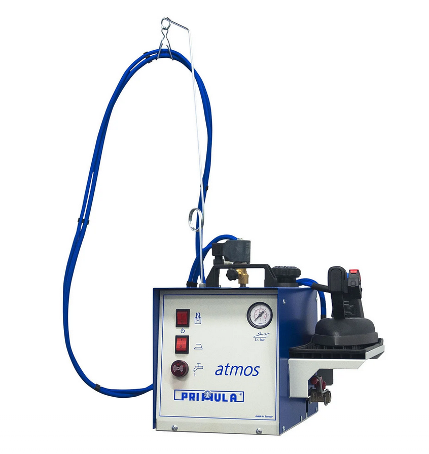Generator de abur cu fier de calcat PRIMULA ATMOS Conceput pentru ateliere de croitorie, include antena suport pentru cablu si furtun. Indicator luminos si buzzer pentru notificare nivel scazut apa. Specificatii: